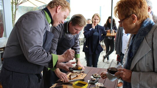 Spitzenkoch Bernd Becker (vorn links) kredenzte den Gästen mit seinem Team eine außergewöhnliche Fleischauswahl. Foto: Christina Nover Christina Nover