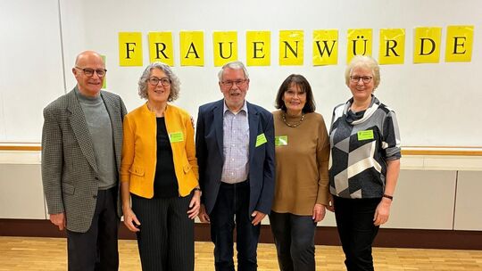 Der aktuelle Vorstand des Vereins Frauenwürde Neuwied bei der Feierstunde zum 25-jährigen Bestehen (von links): Michael Leidheiser, Ingrid Schweizer, Hanspeter Schladt, Dorothee Bruchof, Elisabeth Freise. Else Bähren