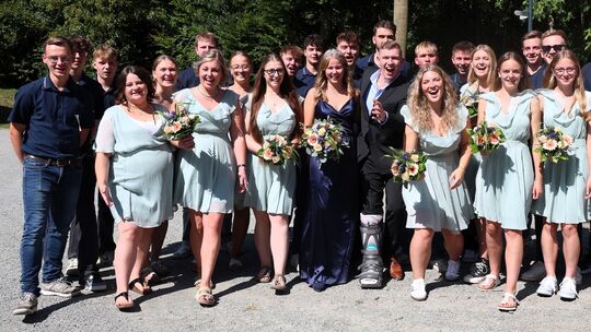 Ganz schön viel Trubel auf dem Waldfestplatz, wenn die Rengsdorfer Burschen und die Maimädchen die traditionelle Kirmes feiern. Beim Umzug am Sonntag stand das Maikönigspaar Hannah Kalbitzer und Marco Mai im Mittelpunkt der Festlichkeiten. Da kam schon beim Gruppenfoto Freude auf, auch wenn der Maikönig doch nur ein wenig eingeschränkt feiern konnte.