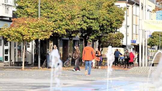 Das neue Wasserspiel auf dem Luisenplatz sprudelt schon, jetzt beginnen die Vorarbeiten für den zweiten Bauabschnitt. Jörg Niebergall