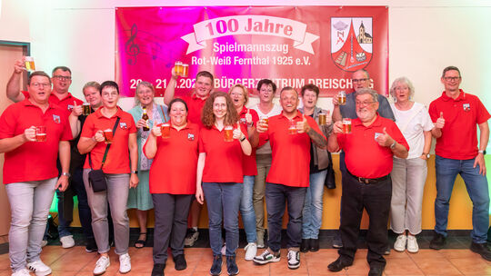 . 100 Jahre: Dieses runde Jubiläum feiert der Spielmannszug Fernthal, und das in vollen Zügen. Schon am Samstag trafen sich Mitglieder und Freunde zur zünftigen Party im Bürgerzentrum "Dreischläg" in Fernthal. Um Danke zu sagen, setzte der Vereinsvorstand die Getränkepreise auf 1 Euro.