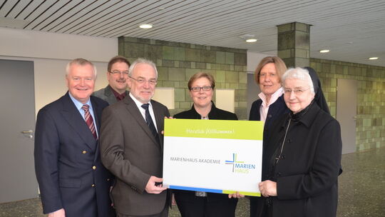 Voller Vorfreude auf den neuen Bildungscampus in Neuwied (von links): Bürgermeister Reiner Kilgen (CDU), Wirtschaftsförderer Jürgen Müller, Oberbbürgermeister Nikolaus Roth (SPD), Akademieleiterin Dr. Birgit E. Schmidt, Geschäftsführerin Christa Gravert und die Stiftungsvorsitzende Schwester Basina Kloos. Ulf Steffenfause