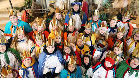 Wenn das kein gelungener Anlass fürs Gruppenfoto der Sternsinger gewesen ist. Die Krippenlandschaft in der Pfarrkirche St. Clemens in Dierdorf feierte ihren zehnten Geburtstag. Seit 2015 kümmert sich das Krippenteam mit der ehemaligen Künstlerin Claudia Vervoorn, Heide Ertelt, Erwin Rüddel und Petra Schiller federführend um den Auf- und Abbau.
