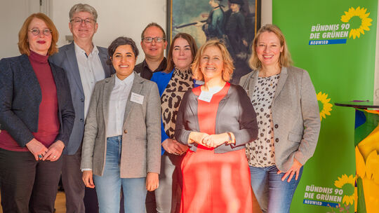 Fanden sich zum Empfang in Engers ein (von links): Tabea Rößner, Ralf Seemann, Misbah Khan, Holger Wolf, Natalie Cramme-Hill, Katrin Eder und Ann-Kathrin Schrepfer. Foto: Rainer Claaßen Rainer Claasen