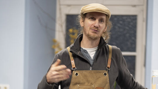 Einen alten Nahverkehrsbus aus Berlin baute Michel Malcin nach einer depressiven Phase zu einem Café um. Zusammen mit Lehrerin Helene Volkensfeld las der ehemals in Osnabrück als Pfarrer tätige Malcin in Neuwied.