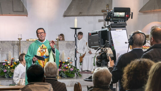 Schon um 8 Uhr strömten viele Gläubige zur Pfarrkirche St. Katharina, um den ZDF-Sonntagsgottesdienst zu erleben. Nach einer kurzen Einweisung durch das Regiepersonal startete die Sendung um 9.30 Uhr, der Gottesdienst wurde von rund 600.00 Gläubigen am Bildschirm bundesweit verfolgt, aber nur 250 Gläubige hatten die Möglichkeit, vor Ort zu sein.