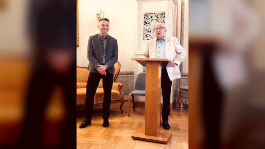 „Ich habe allerhöchsten Respekt vor dem Lebenswerk von Emil Morsch", betonte Landrat Miroslaw Kowalski in seiner Begrüßung vor rund 20 Zuhörerinnen und Zuhörern. Mit der aufgebauten Stiftung konnten sie bis heute weltweit Tausenden Menschen, die an Leukämie erkrankt sind, Hoffnung geben - und vielfach deren Leben retten. „Das war Stefans Vermächtnis", unterstrich Emil Morsch in seinem Vortrag. Gemeinsam mit Hendrik Weinz, dem neuen Vorstandsmitglied der SMS, nahm er das Publikum mit auf eine bewegende Reise, geprägt von ernsten Momenten, aber auch von persönlichen Anekdoten.