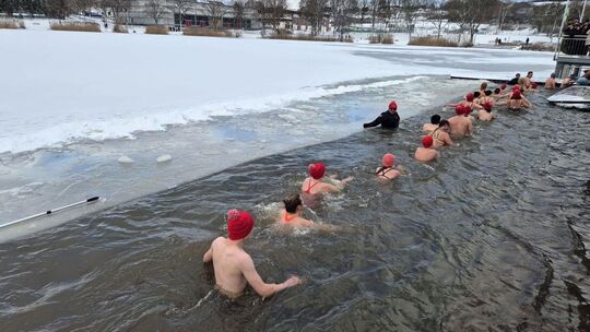 Bei der zwölften Auflage des Neujahrsschwimmens verzeichnet die DLRG-Jugend einen Teilnehmer- und Besucherrekord. Viele Zuschauer verfolgten das Eisschwimmen, für das erstmals nach Jahren die geschlossene Eisdecke aufgeschnitten werden musste.
