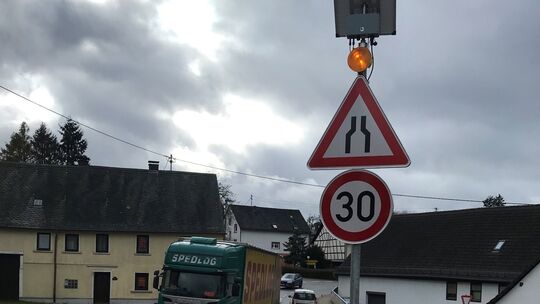 Oberbrombach. Es ist laut Karsten Becker, dem Leiter der Masterstraßenmeisterei Kirn, ein weiterer „Eyecatcher“, um Verkehrsteilnehmer auf die neuralgische Stelle aufmerksam zu machen. In der Ortsdurchfahrt der B 41 in Oberbrombach gibt es eine scharfe Kurve, in der maximal Tempo 30 erlaubt ist.