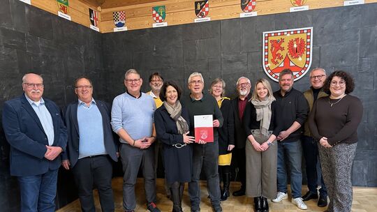 Einen Förderbescheid über 3,547 Millionen Euro überreichte Wirtschafsministerin Daniela Schmitt im Wappensaal der Verbandsgemeindeverwaltung an Bürgermeister Uwe Weber. Foto: Kurt Knaudt Knaudt Kurt. Kurt Knaudt