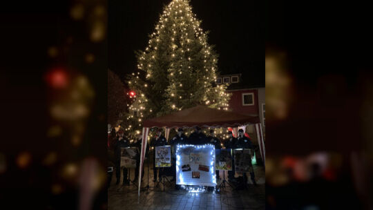 Die Bachwagge Idar-Oberstein vor dem festlich leuchtenden Weihnachtsbaum, der im Vorfeld von der Kita Tiefenstein sowie der Grundschule Idarbachtal geschmückt worden war. Michael Brill