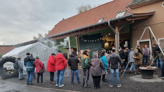 Trotz heftiger Regenschauer waren nicht nur die Halle und das Zelt gut gefüllt, auch vor der Halle warteten viele Gäste auf ihre Bratwurst. Gerhard Müller