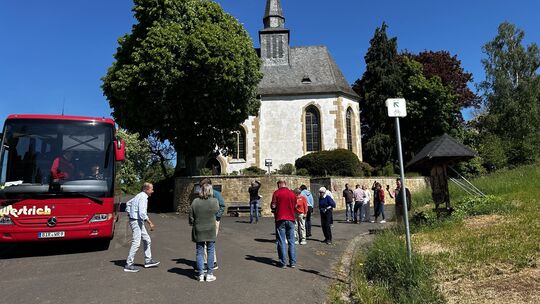 Die Initiative Soonwald bietet in Kooperation mit unserer Zeitung von Mai bis Oktober wieder sechs Fahrten mit dem Soonwaldbus, hier an der Kirche in Eckweiler, an. Monika Kirschner-Ludwig