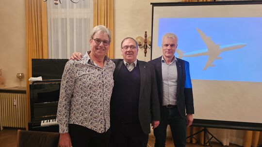 Am 1. April 2025 landete der 65-jährige Axel Graumann als Flugkapitän ein letztes Mal einen Passagierjet. Doch am vergangenen Montag hob er in der Kasino-Gesellschaft vor mehr als 30 Gästen ab zu einer außergewöhnlichen Runde: Er nahm die Anwesenden mit zu einer Reise in die Welt der Berufsfliegerei, untermalt mit eigenen Fotos, meist aufgenommen aus dem Cockpit, und selbst komponierter und improvisierter Musik am Klavier.