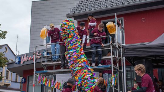 Es war ein Neuanfang – und dabei auch eine Rückkehr zu den Wurzeln – vier Tage lang wurde am Marktplatz und in den benachbarten Gaststätten Kerb gefeiert. Zum Auftakt holten die Verantwortlichen das Flunikball-Turnier der Straußjugend auf die mittlere Parkstufe ins Stadtzentrum, sodass die Kerb auch mitten ind er Stadt begann.