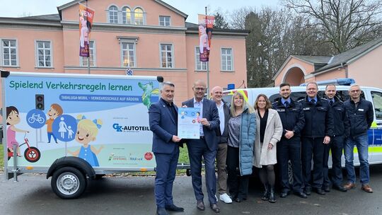 Den Anhänger für die Verkehrserziehung übergaben Vertreter alle im Projekt involvierten Firmen, Organisationen und Behörden feierlich an die Verkehrssicherheitsberater der Polizei. Niels Heudtlaß