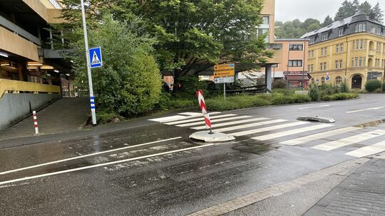Die Unfallstelle am Börsenhochhaus in Idar: Mittlerweile wurde der Zebrastreifen versetzt. Günter Schönweiler