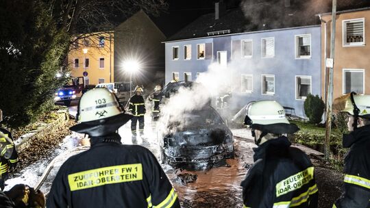 Im Barbararing in Idar-Oberstein ist es am frühen Donnerstagabend zu einem Fahrzeugbrand gekommen. Gegen 18 Uhr wurden die Einsatzkräfte alarmiert, nachdem Anwohner einen brennenden Pkw gemeldet hatten. Beim Eintreffen der Feuerwehr stand der Mercedes bereits in Vollbrand, Flammen schlugen aus dem Motorraum und dem Fahrzeuginneren.