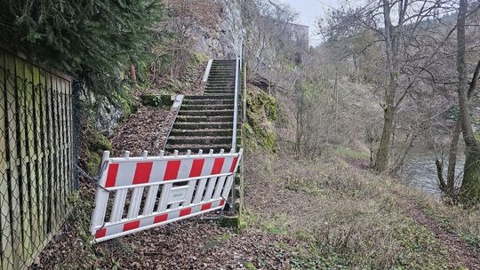 Die angespannte Haushaltssituation der Stadt Idar-Oberstein führt jetzt auch zu Umwegen: Die Treppe vom Umspannwerk an der ehemaligen Weinsauschule hinab zum Parkplatz „In der Kammer“, unter anderem Zuwegung zum Premiumwanderweg „Rund um die Kama“, zur Gaststätte „Kammerhof“ und überhaupt zum beliebten Naherholungsgebiet, bleibt nach Angaben der Stadt wegen eines Felsabgangs bis auf Weiteres gesperrt.