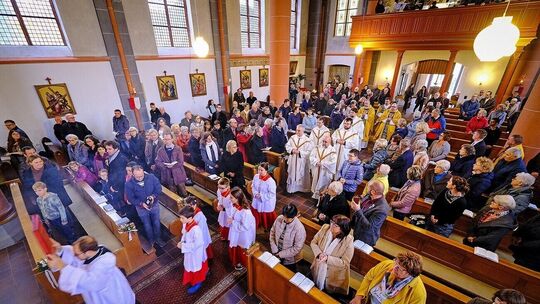 So viele Kirchgänger sind in heutiger Zeit eher selten: Das katholische Gotteshaus in Birkenfeld war anlässlich der Primizfeier von Lukas Kraus gut gefüllt. Hans-Georg Heck