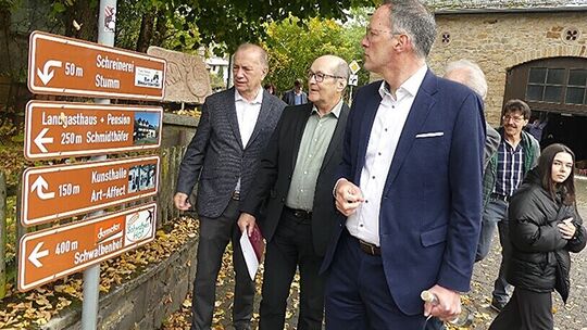 Bei einem kleinen Spaziergang durch den Ort erläuterte Ortsbürgermeister Hubert Paal Innenminister Michael Ebling die Vorhaben in Berschweiler. Günter Weinsheimer