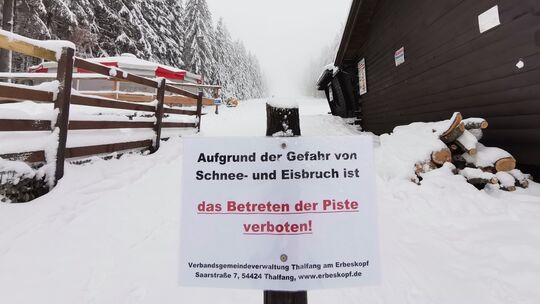 Betreten verboten: Wegen Schneebruchgefahr ist die Skipiste am Erbeskopf gesperrt. Aus diesem Grund dürfen auch die Parkplätze am Wintersportzentrum vorerst nicht genutzt werden. Zudem ist auf anderen Straßen in der Nähe kein Durchkommen möglich. Reiner Drumm