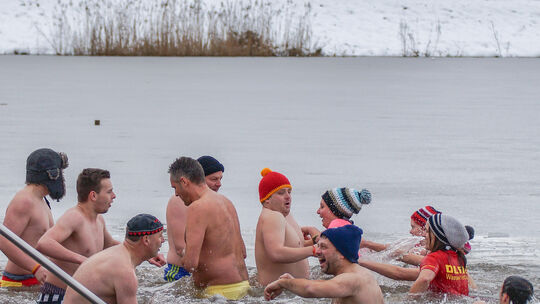 Neujahrsschwimmen: Mit Bommelmütze in den eisigen Weiher