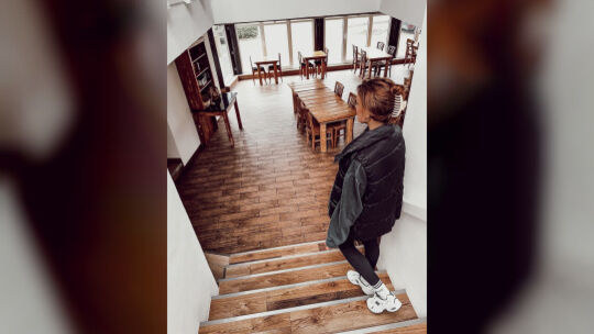 „Damit erfülle ich mir schon einen kleinen Traum.“ Jaqueline Vazzola steht auf der Treppe und wirft einen Blick in den großen Raum, in dem sie ab März Besucher ihres Cafés bewirten möchte. Foto: Peter Forster Peter Forster