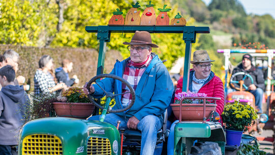 Im strahlenden Sonnenschein tuckerte am Sonntagnachmittag gemächlich der Umzug des 74. Erntedankfests auf der Heide durch die herbstliche Szenerie.