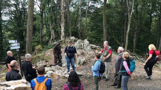 Der Zauberwald mit seinem Traumschleifchen ist ein beliebter Anziehungspunkt für Wanderer. Erst kürzlich machten dort Experten aus ganz Deutschland bei einer Tour einen Zwischenstopp am Hambacher Felsen, wo auch eine Holzfigur des Maskottchens Willy Wurzel steht. Foto: Axel Munsteiner frei
