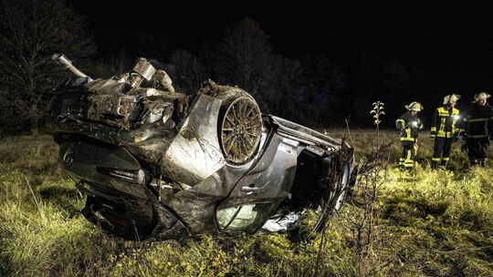Das Auto kam auf von der regennassen B41 ab und überschlug sich. Christian Schulz. Foto Hosser