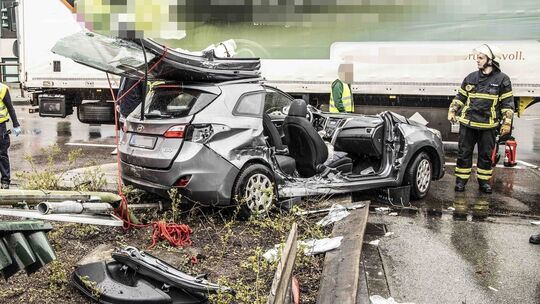 Die Feuerwehr musste schweres Gerät einsetzen, um die Verletzte aus dem Autowrack zu bergen. Foto: Hosser Hosser