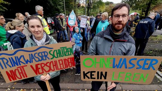 Im Oktober 2022 demonstrierten Naturschützer und Anlieger in Schwollen gegen die Wasserentnahme aus dem Nationalpark. Reiner Drumm (Archiv). Reiner Drumm