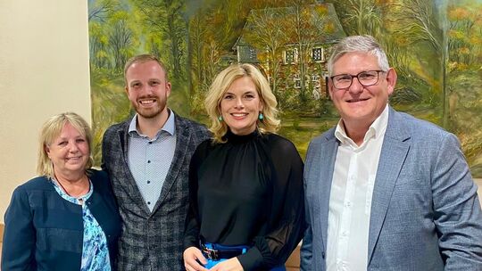 Auch Bundestagspräsidentin Julia Klöckner war nach Oberhosenbach gekommen, um der Kür von Stephan Dreher (rechts) als CDU-Kandidat bei der Wahl zum Bürgermeister der VG Herrstein-Rhaunen beizuwohnen. Links Ortsbürgermeisterin Kirsten Beetz neben Landtagskandidat Frederik Grüneberg. Annika Scheidt/Büro Klöckner