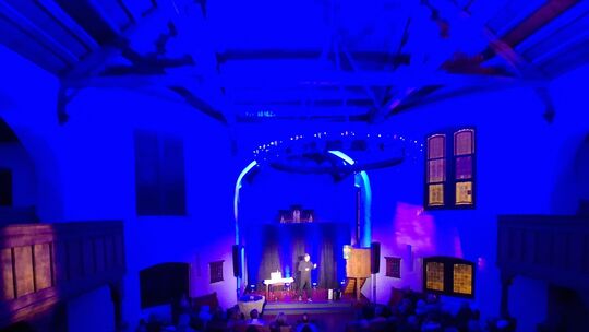 Petra Krug begrüßte die Besucher im Namen des Kulturvereins in der voll besetzten evangelischen Kirche, die nun als Ausweichquartier dient, nachdem der Saal Dahlheimer „uns von der Kreisverwaltung geschlossen wurde“. Der Wahl-Münchener war dennoch beeindruckt: „Was für eine tolle Location!“