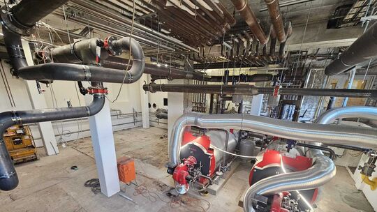 Nicht nur am Außengelände, sondern auch um Beispiel in der Heizzentrale (Foto) des Klinikums Idar-Oberstein wird seit März gearbeitet. Derzeit ist die Maßnahme aber "pausiert". Moritz Forster/SHG