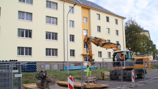 In den Smith Barracks haben zu Beginn der Woche die Arbeiten zur Verlegung neuer Wasser- und Abwasserleitungen begonnen. Foto: Sascha Saueressig Sascha Saueressig