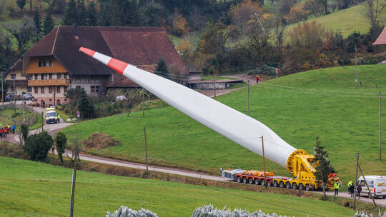 So kann es aussehen, wenn Windradflügel transportiert werden. Wie die Schwertransporte nach Siesbach kommen sollen, ist derzeit noch nicht geklärt. Philipp von Ditfurth. picture alliance/dpa