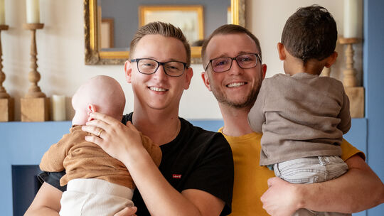 Als schwules Paar auf dem Land haben Jan und Jonas Bender, 26 und 28 Jahre alt, aus Idar-Oberstein ihr Familienglück gefunden. Ihr beiden kleinen Söhne (der nun Zweijährige wurde im Mai 2025 adoptiert, der zweite kam im Sommer – ein Monat alt – als Pflegekind) nennen sie liebevoll Tiger und Löwe.