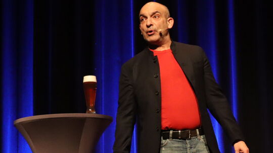 Wenn bayrische Mundart auf der Bühne der Stiftung Kleinkunstbühne zu hören ist, zudem ein Weizen in Griffweite „geparkt“ ist, dann ist Django Asül nicht weit. So auch am Dienstagabend, als die Kleinkunstbühne um ihre Vorsitzende Eva Ebbeke den Niederbayern mit türkischen Wurzeln nach Kreuznach geholt hatte.