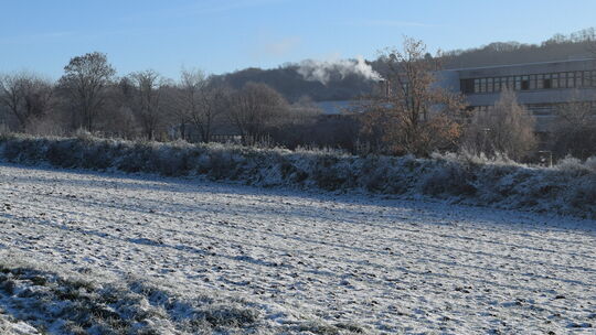 Die geplante Anbindungstrasse an der Alfred-Delp-Schule (rechts) vorbei zur K 49 soll die Ortslage vom Schulbusverkehr entlasten. Foto: Christine Jäckel (Archiv) chj