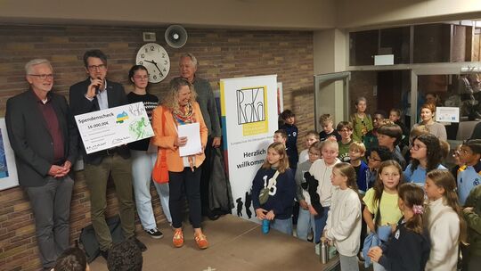 16.000 Euro hatten die Schüler des Gymnasiums „Am Römerkastell“ für ihre Partnerschule, die Es Munzanga in Ruanda, beim Spendenlauf zusammenbekommen. Die hohe Spendensumme, die aus dem großen Engagement der Schüler beim Lauf resultierte, ist nicht nur aller Ehren wert, sondern sie lockte neben Landrätin Bettina Dickes auch Florens Eckert vom Referat Partnerland Ruanda der Staatskanzlei in Mainz ins Röka, um den Scheck in Empfang zu nehmen.