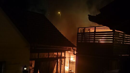 Bei Explosionen in seinem Gartenhaus erlitt der 62-Jährige Besitzer eines Einfamilienhauses in Kusel schwere Verletzungen. Die Feuerwehr war mit 25 Einsatzkräften vor Ort. Polizeipräsidium Westpfalz
