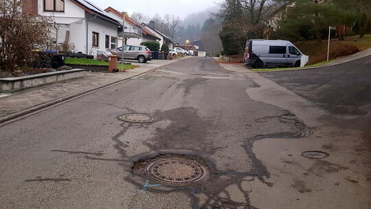 Die Bürgermeister-Kircher-Straße im Meisenheimer Wohngebiet Im Tal soll ausgebaut werden. Sie weist Risse, Unebenheiten und Fahrbahnschäden auf, die Stolper- und Unfallgefahren nach sich ziehen. Roswitha Kexel