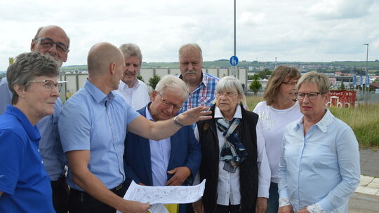 Mitglieder der CDU um Fraktionschef Werner Klopfer (6. von links) begutachteten mit Wirtschaftsförderer Markus Schlosser (4. von links) die Entwicklung im Gewerbegebiet P 7.1 im Osten der Stadt. Foto: Harald Gebhardt Gebhardt