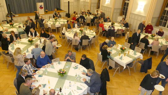 An festlich gedeckten Tischen im Gemeindehaus begrüßte Stadtbürgermeister Reinhold Rabung zahlreiche Ehrenamtliche, Mitarbeiterinnen und Mitarbeiter, politische Amtsträger und weitere Gäste. Roswitha Kexel