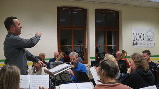 Dirigent Christoph Kaul und die vorderen Reihen seines BOS-Teams bei einer der zig Probenstunden vor dem großen Auftritt Wilhelm Meyer