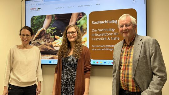 Nadja Wobbe (von links), Anna Schloss und Rainer Lauf, Vorsitzender des Regionalbündnis Soonwald-Nahe, stellen die neue Online-Plattform mit dem Namen "SooNachhaltig" vor. Lena Reuther
