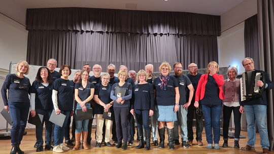 Das Museums Aktivteam um seine Chefin Anke Wiechert als Museumschor unter der Leitung von Bernd Wagner und seiner Begleitung am Akkordeon Wilhelm Meyer