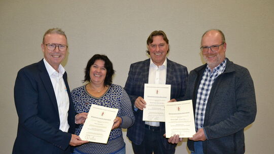 Zu den ersten Gratulanten der neuen Gemeindespitze von Sankt Katharinen mit Ute Dilly (von links), Hans-Walter Nies und Michael Roth, gehörte VG-Bürgermeister Markus Lüttger (links). Dieter Ackermann